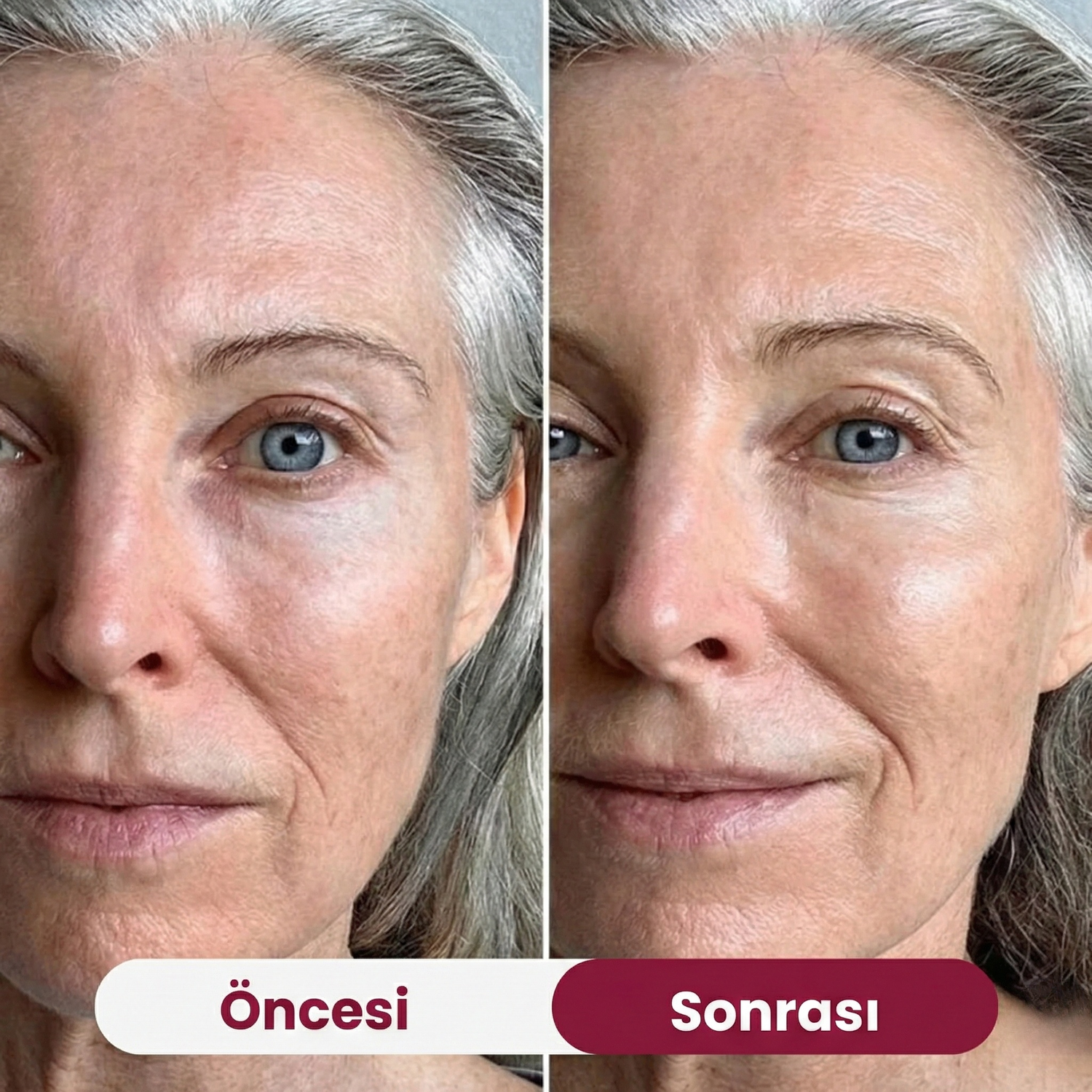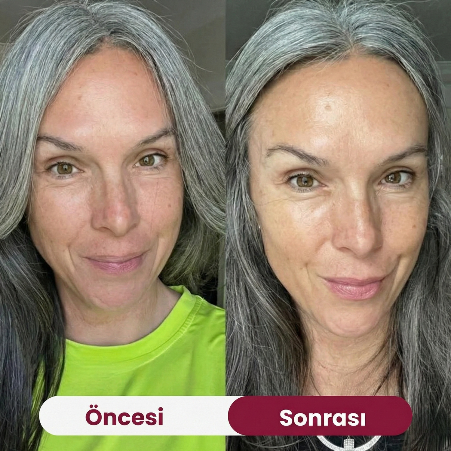 Gözeneklerin inceldiğini, ince çizgilerin azaldığını ve özellikle göz ve alın çevresinde ışıltılı bir görünüm elde edildiğini gözlemledim.